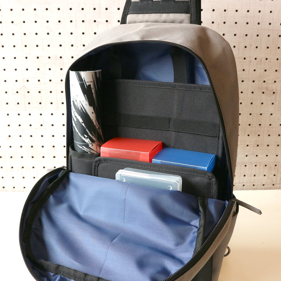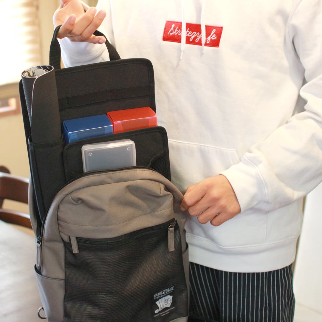 ハーフサイズのプレイマット、デッキケース4箱、その他小物をすっきり収納することができます。