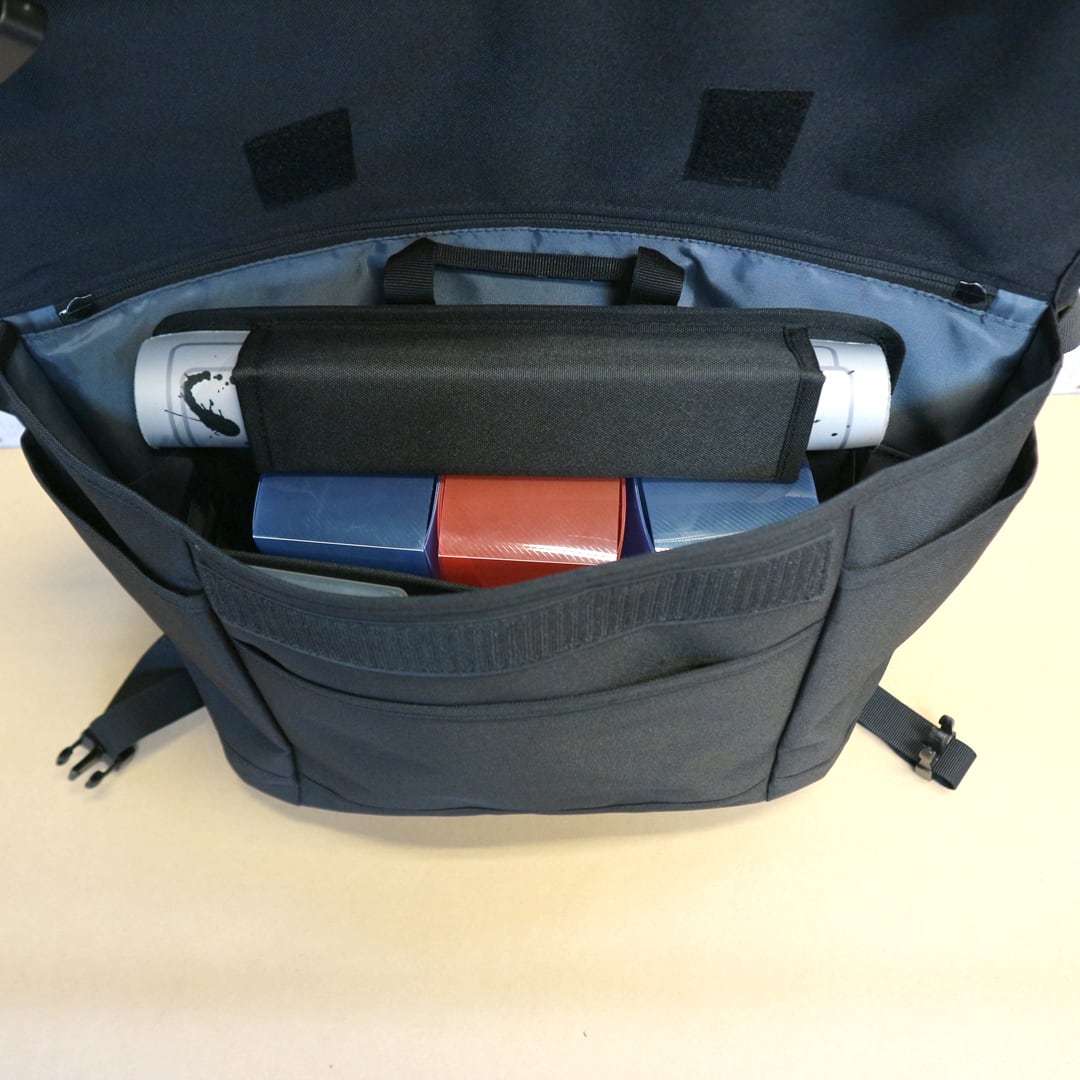 The gusset of the deck case compartment is made of rubber, so it can be used for any size of deck case